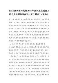 在XX县水务局党组2025年度民主生活会上的个人对照检查材料(五个带头)(精品)
