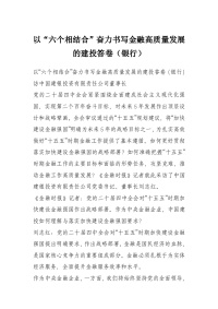 以“六个相结合”奋力书写金融高质量发展的建投答卷(银行)