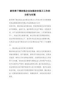 新形势下铜冶炼企业加强治安保卫工作的分析与对策