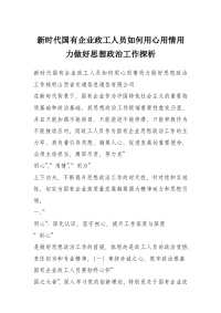 新时代国有企业政工人员如何用心用情用力做好思想政治工作探析