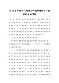 市2025年度深化全国文明城市建设工作情况的总结报告