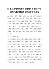 XX县应急管理局委员会贯彻落实2025年落实党风廉政建设责任制工作情况报告