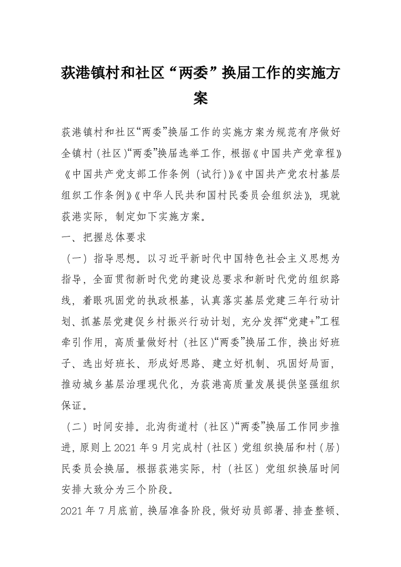 首页写作素材荻港镇村和社区“两委”换届工作的实施方案