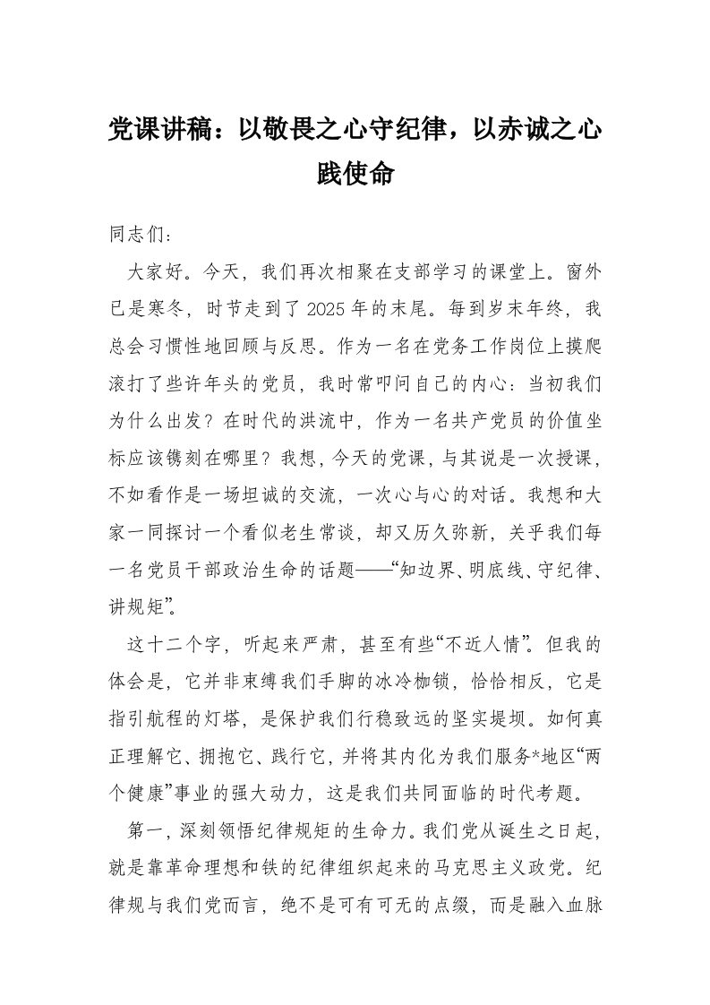 党课讲稿:以敬畏之心守纪律,以赤诚之心践使命