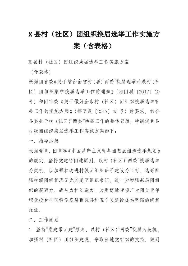 X县村(社区)团组织换届选举工作实施方案(含表格)