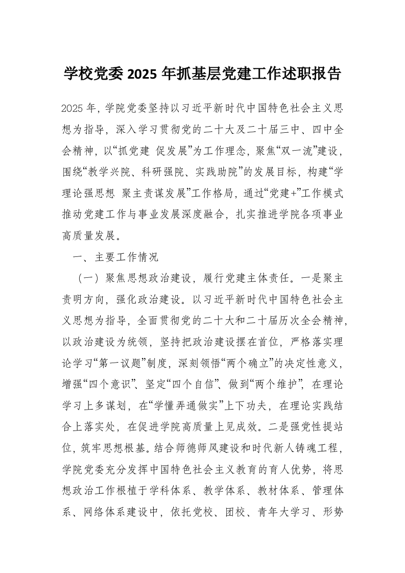 首页学习提升学校党委2025年抓基层党建工作述职报告