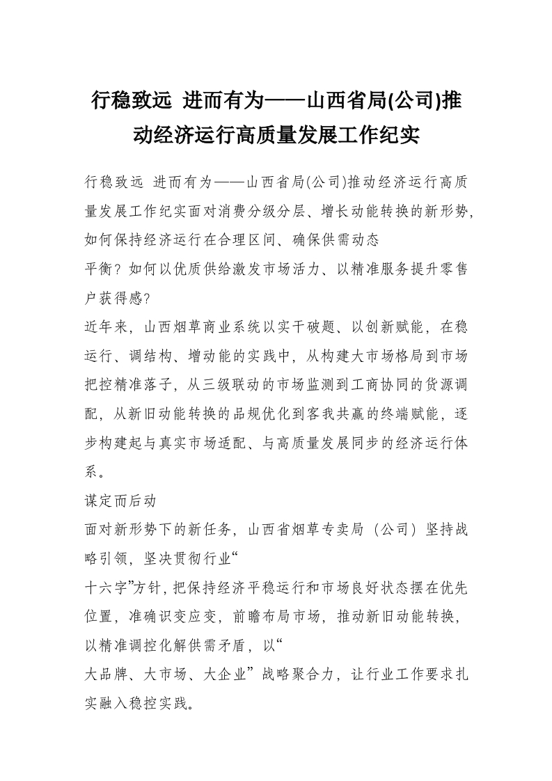 行稳致远 进而有为——山西省局(公司)推动经济运行高质量发展工作纪实