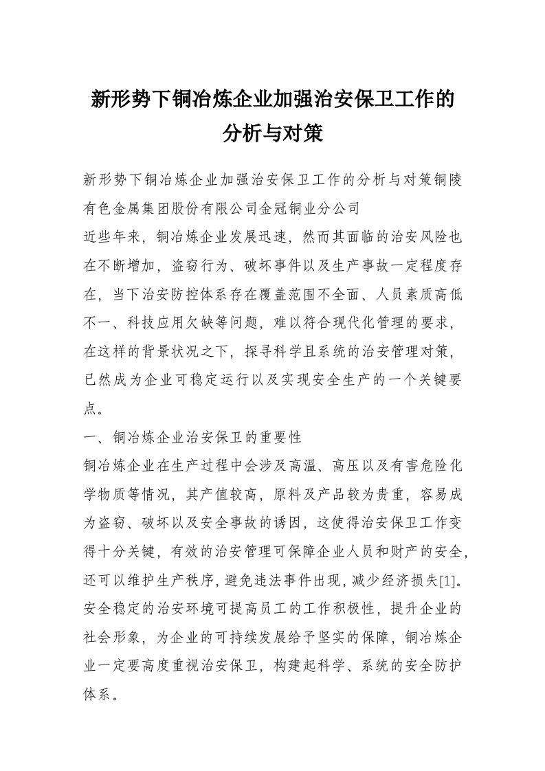 新形势下铜冶炼企业加强治安保卫工作的分析与对策