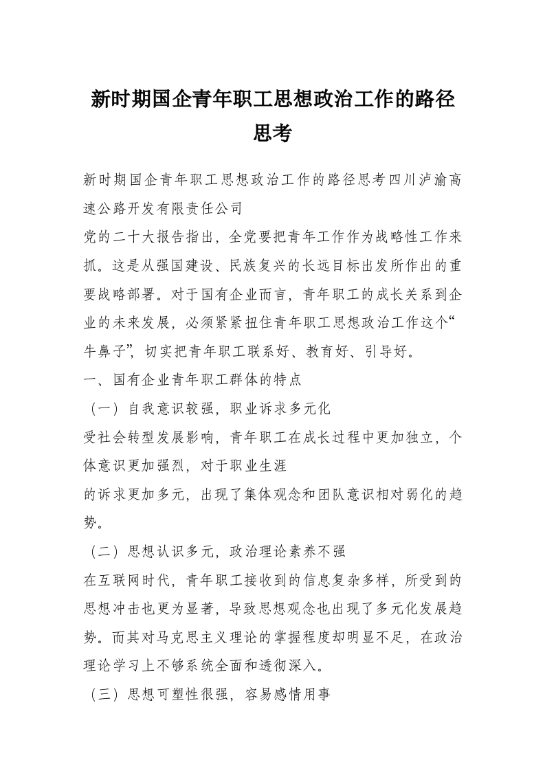 新时期国企青年职工思想政治工作的路径思考