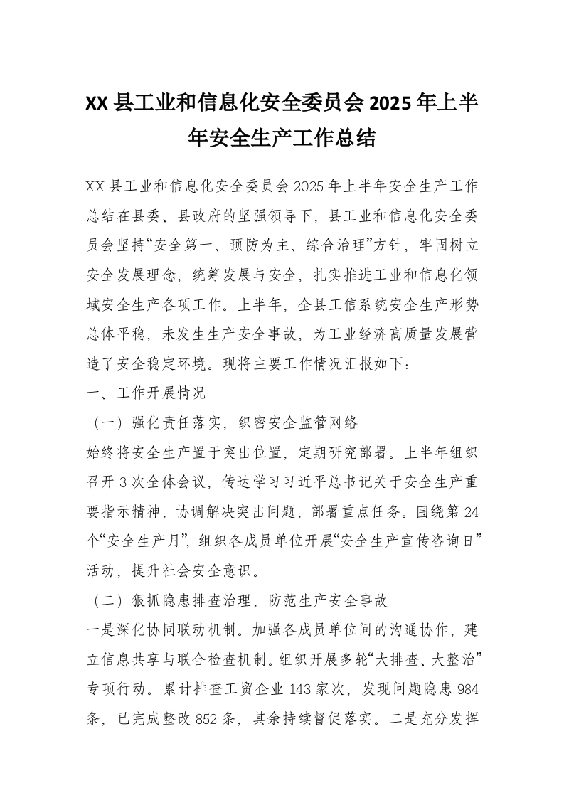 XX县工业和信息化安全委员会2025年上半年安全生产工作总结