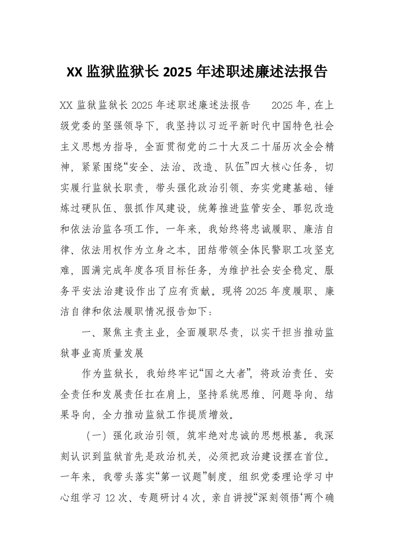 首页学习提升XX监狱监狱长2025年述职述廉述法报告