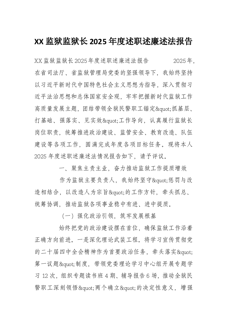 首页学习提升XX监狱监狱长2025年度述职述廉述法报告