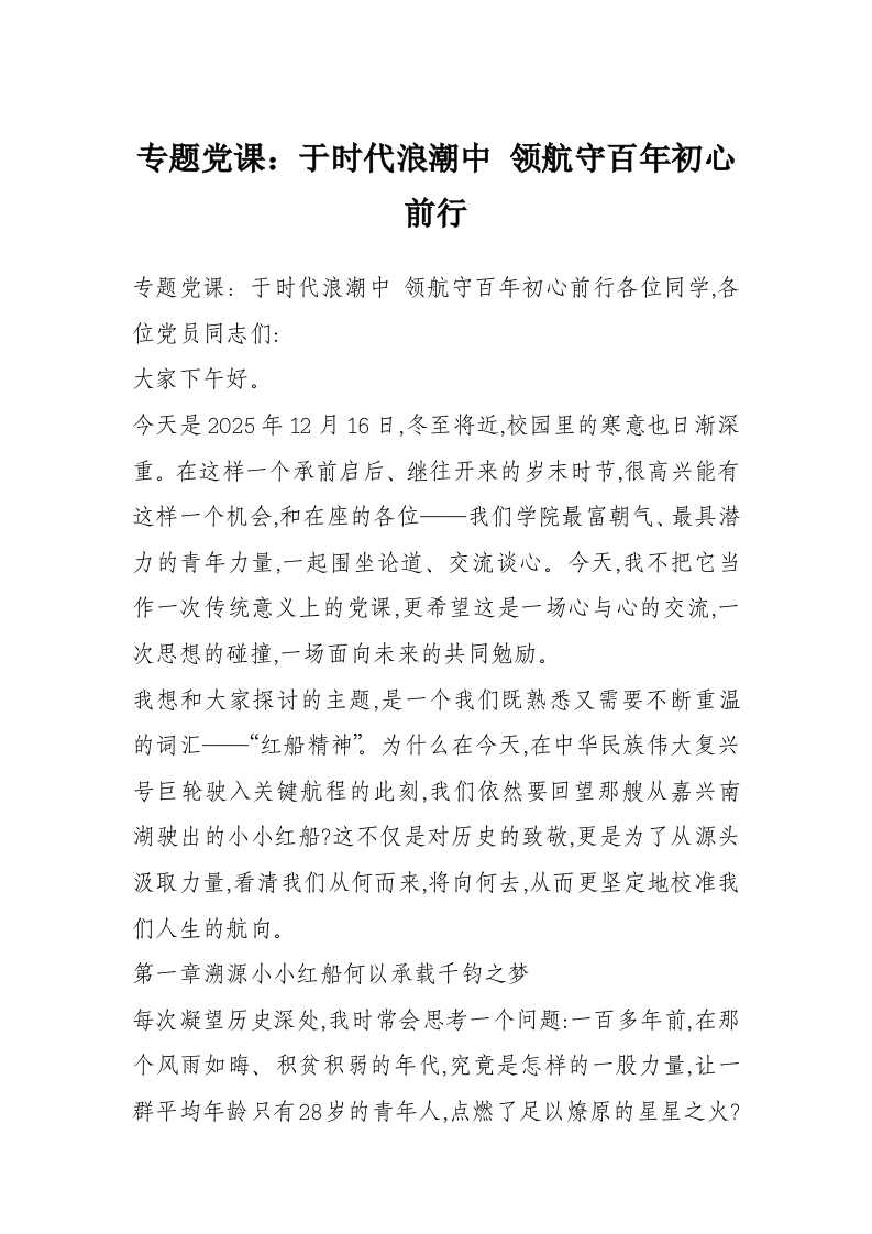 首页写作素材专题党课:于时代浪潮中 领航守百年初心前行