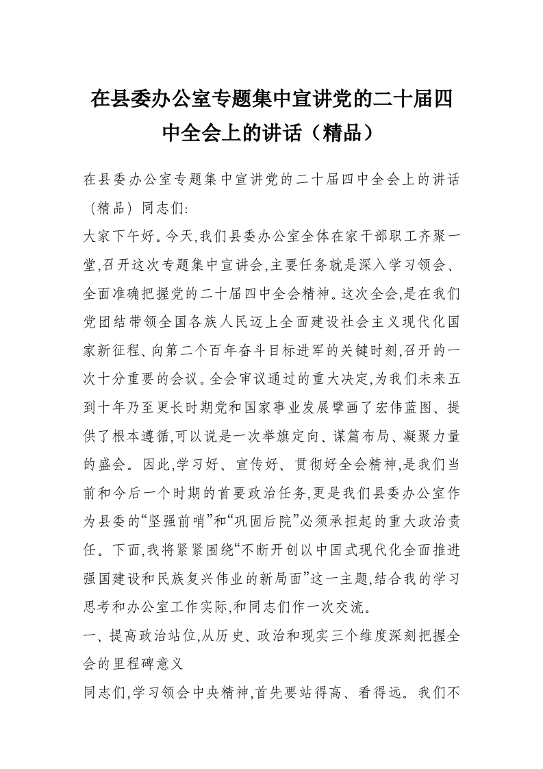 在县委办公室专题集中宣讲党的二十届四中***上的讲话(精品)