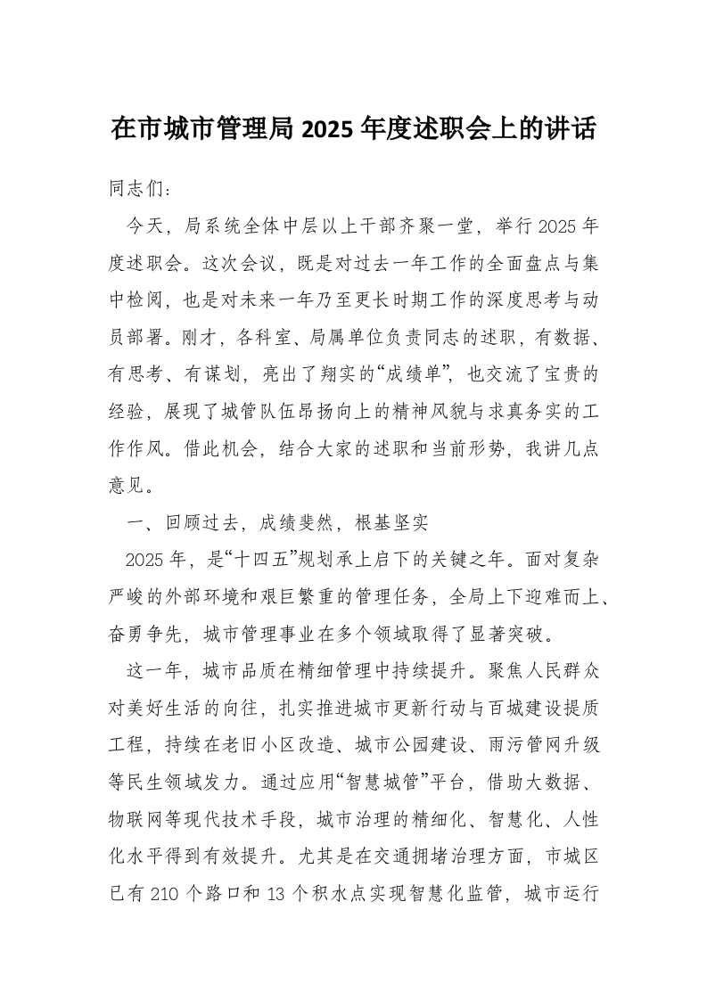 首页写作素材在市城市管理局2025年度述职会上的讲话