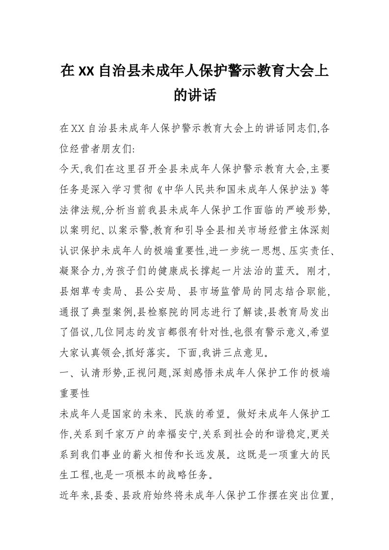 首页写作素材在XX自治县未成年人保护警示教育大会上的讲话