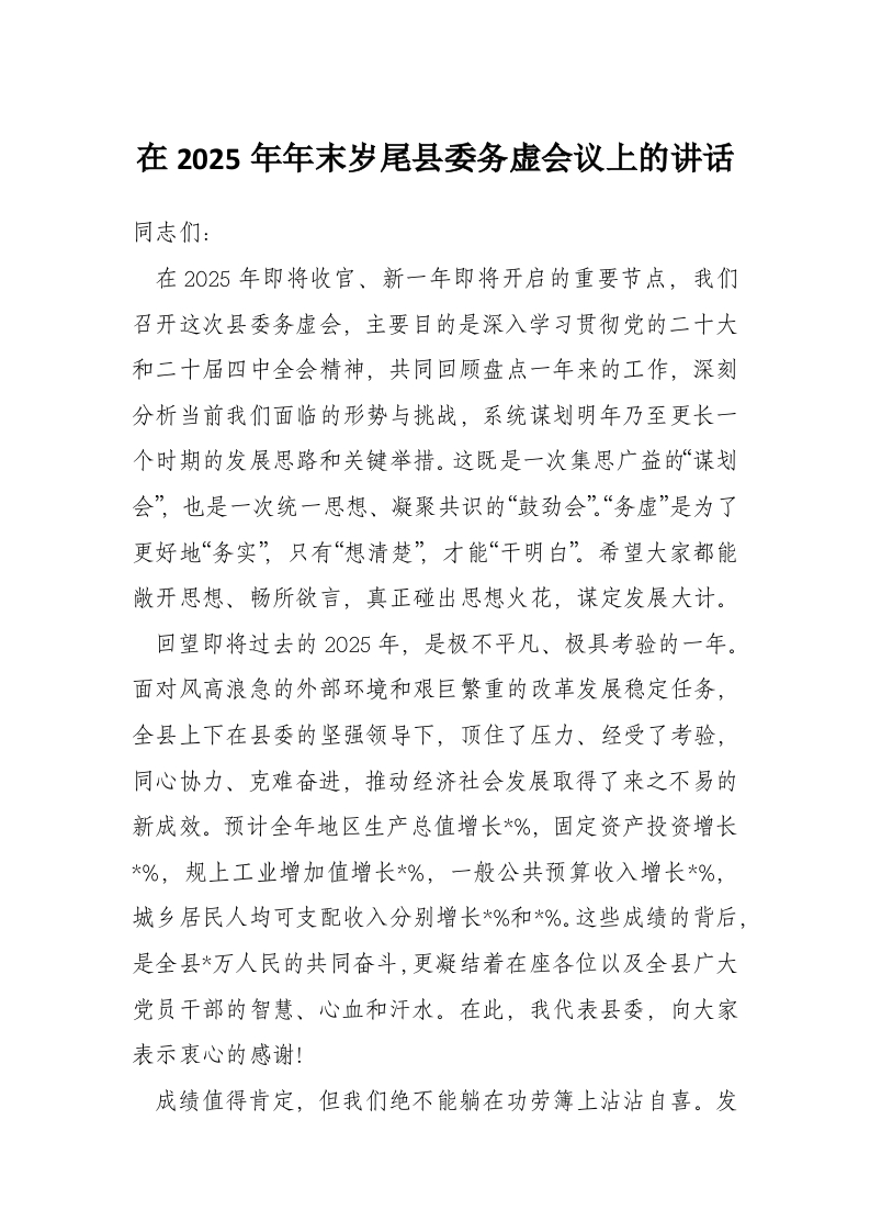首页写作素材在2025年年末岁尾县委务虚会议上的讲话