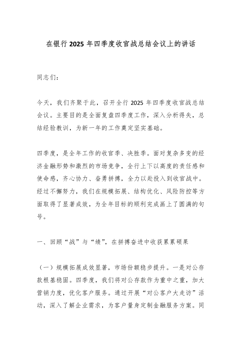 首页精选范文在银行2025年四季度收官战总结会议上的讲话_副本