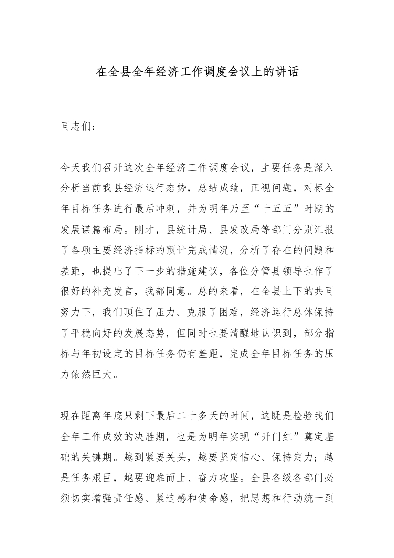 首页精选范文在全县全年经济工作调度会议上的讲话_副本