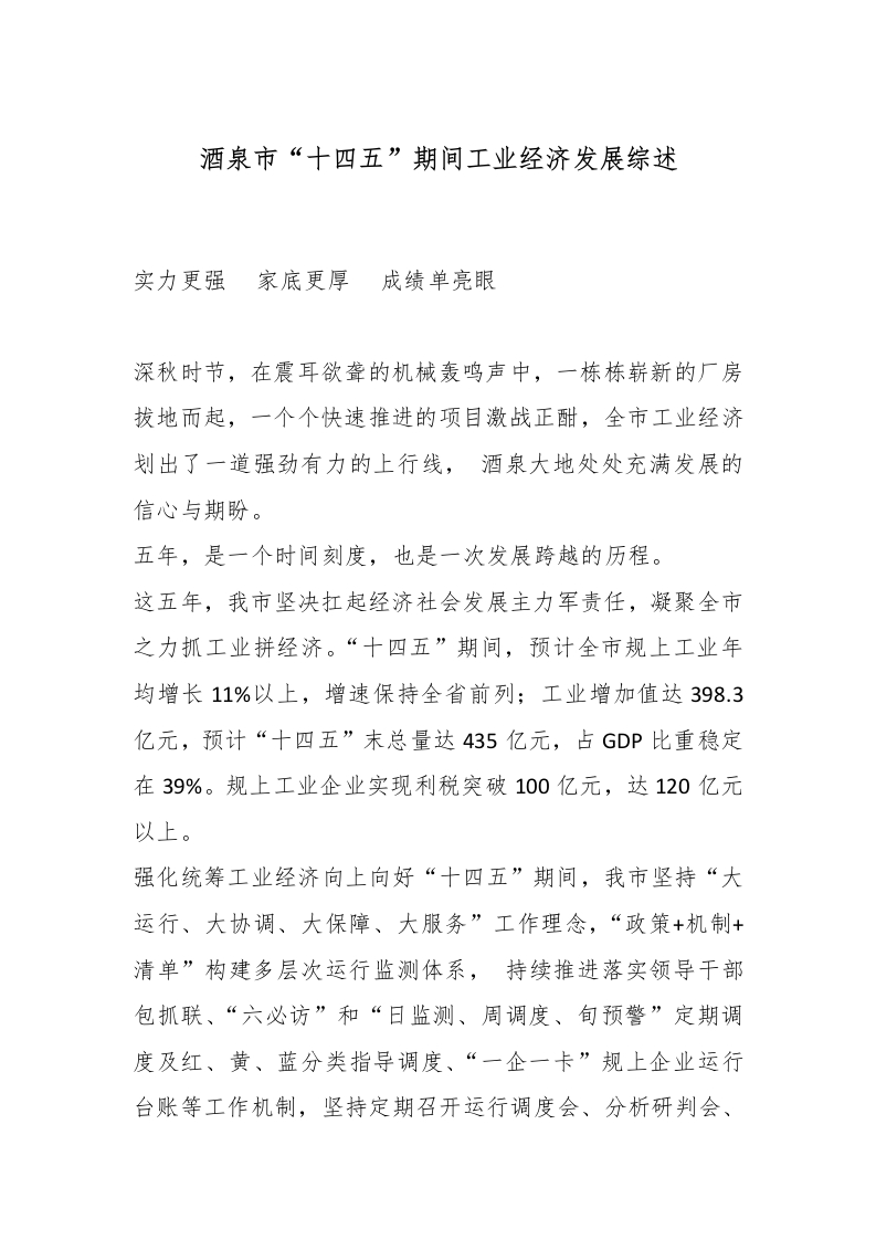 首页精选范文酒泉市“十四五”期间工业经济发展综述_副本