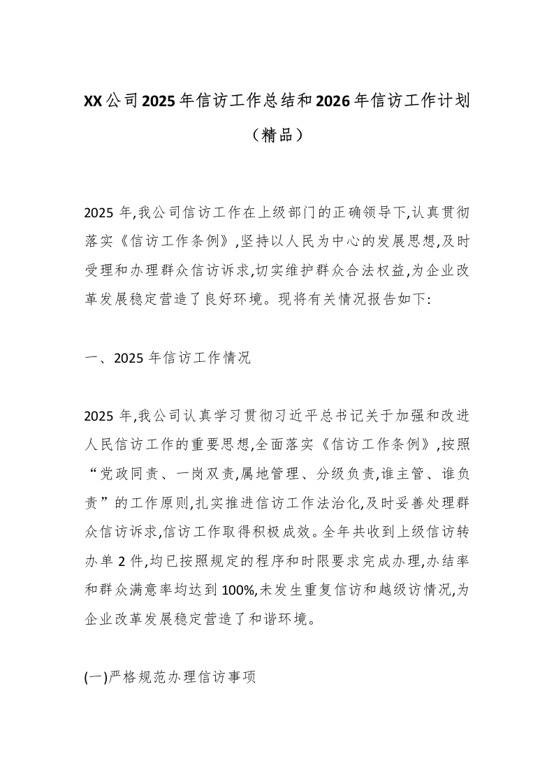 XX公司2025年信访工作总结和2026年信访工作计划(精品)_副本