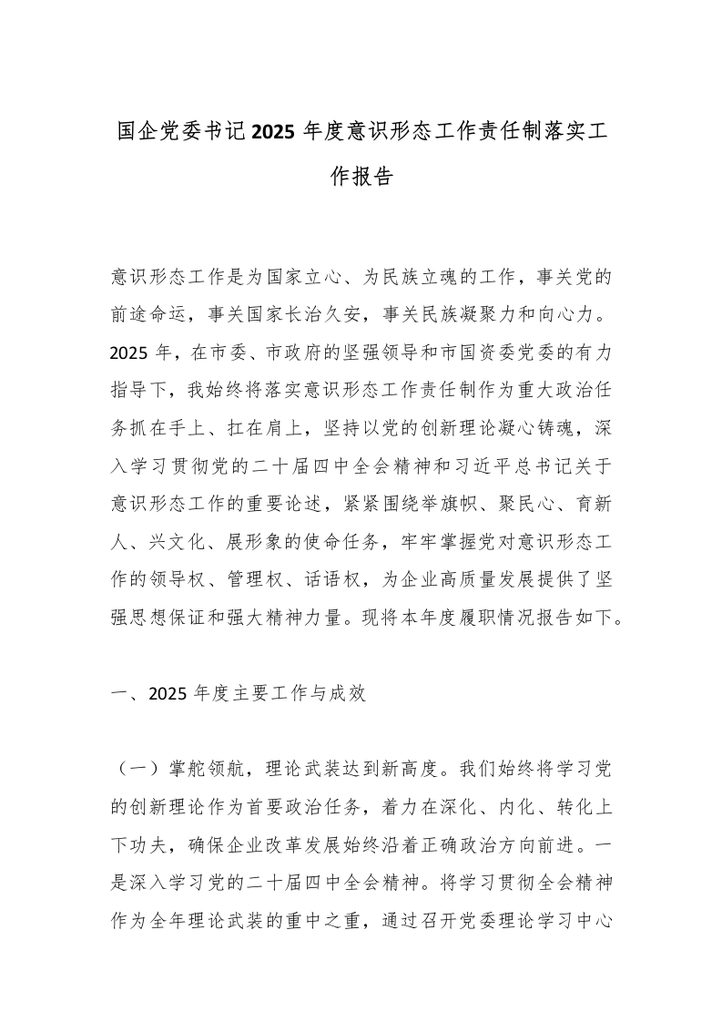 首页精选范文国企党委书记2025年度意识形态工作责任制落实工作报告_副本