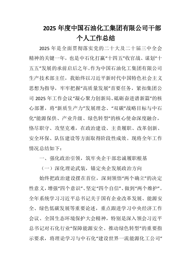 2025年度中国石油化工集团有限公司干部个人工作总结