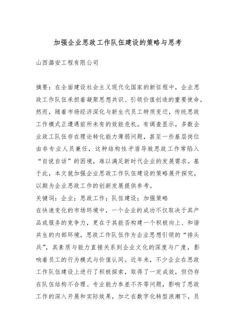 首页精选范文加强企业思政工作队伍建设的策略与思考_副本