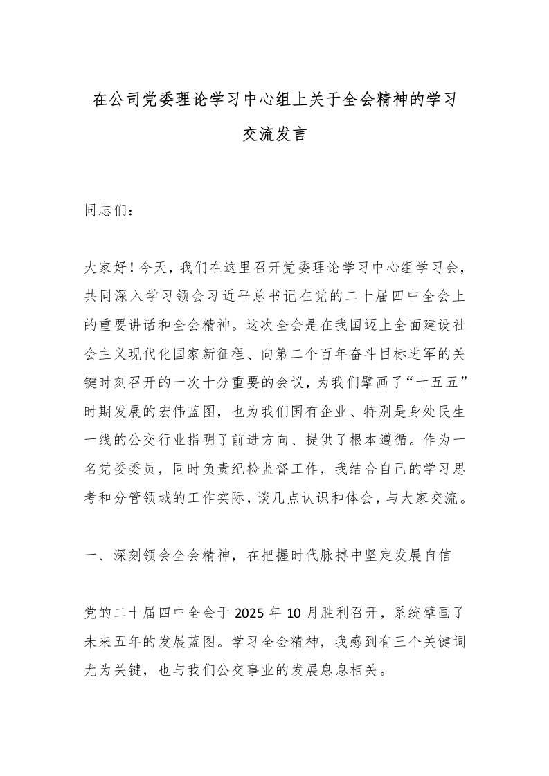 首页精选范文在公司党委理论学习中心组上关于***精神的学习交流发言_副本