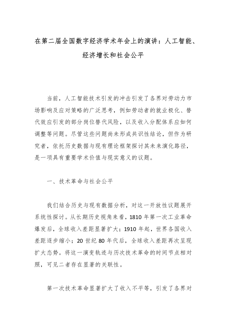 在第二届全国数字经济学术年会上的演讲:人工智能、经济增长和社会公平_副本