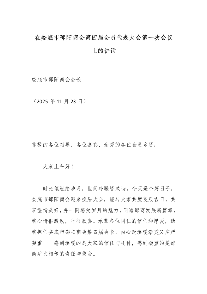 在娄底市邵阳商会第四届会员代表大会第一次会议上的讲话_副本