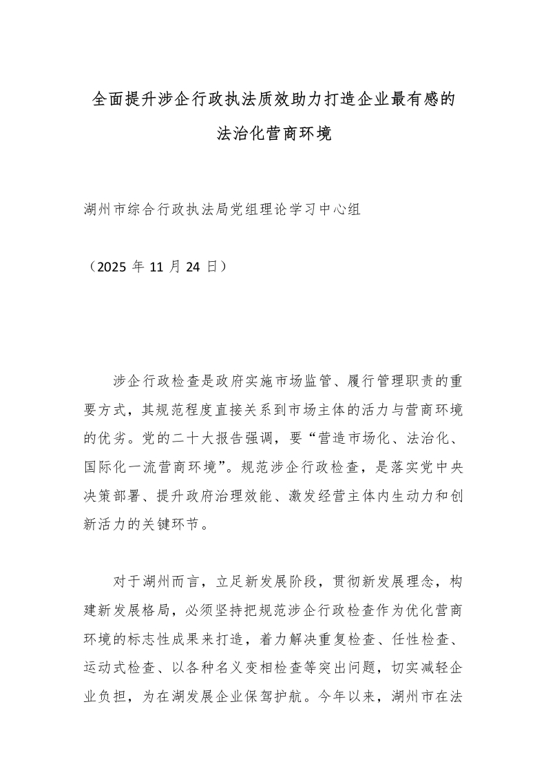 全面提升涉企行政执法质效助力打造企业最有感的法治化营商环境_副本