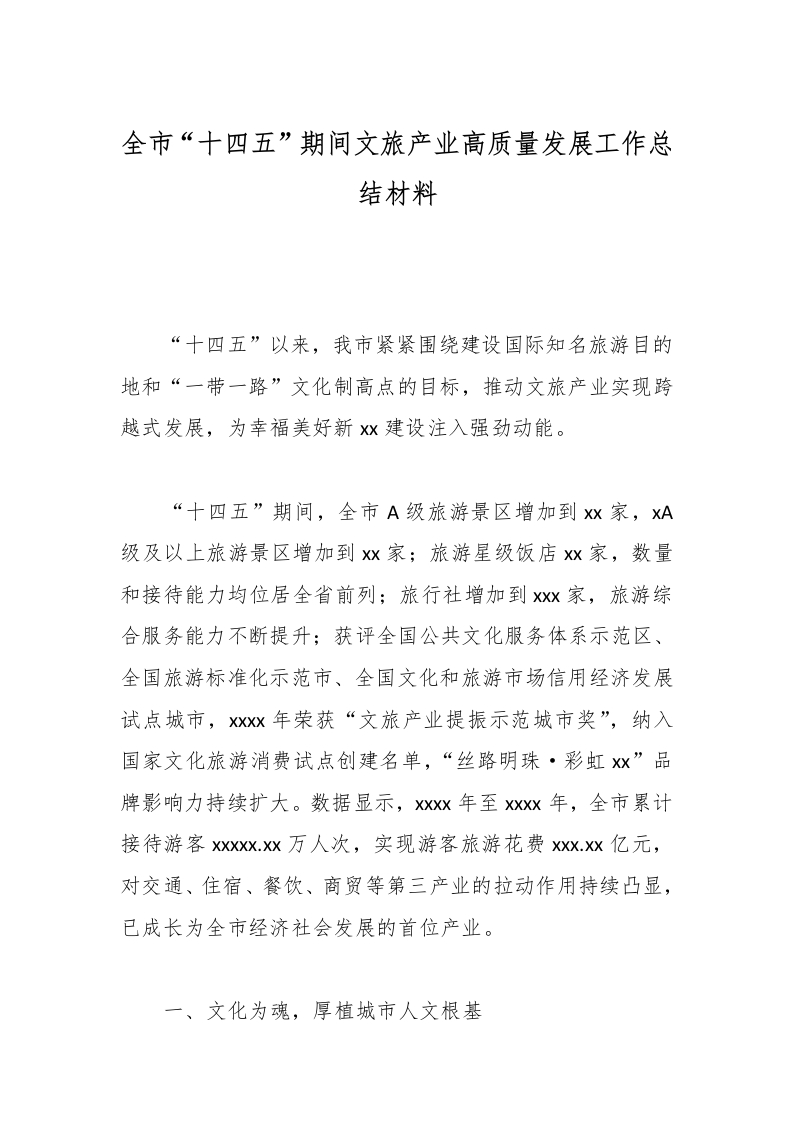 全市“十四五”期间文旅产业高质量发展工作总结材料_副本