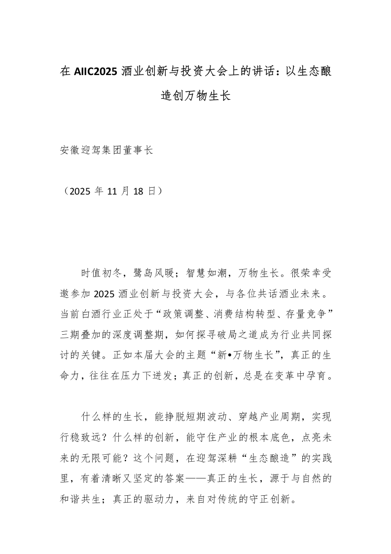 在AIIC2025酒业创新与投资大会上的讲话:以生态酿造创万物生长_副本