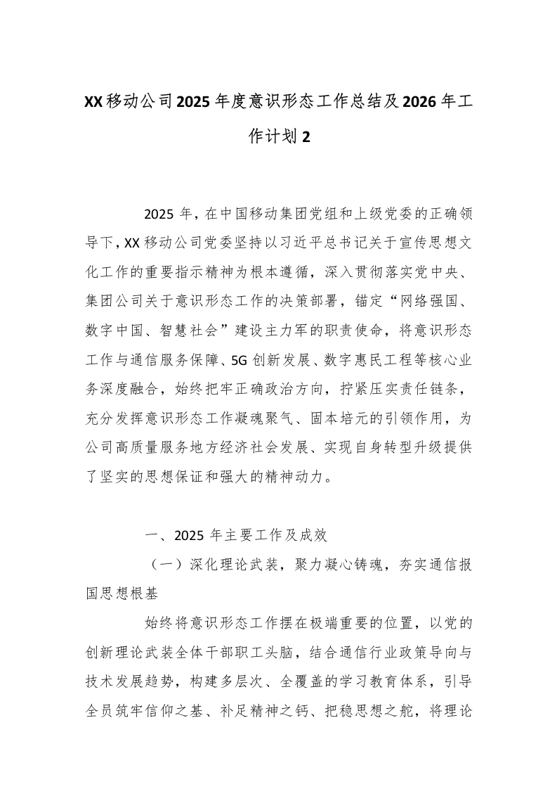 XX移动公司2025年度意识形态工作总结及2026年工作计划2_副本