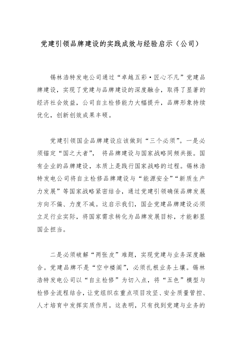 党建引领品牌建设的实践成效与经验启示(公司)_副本