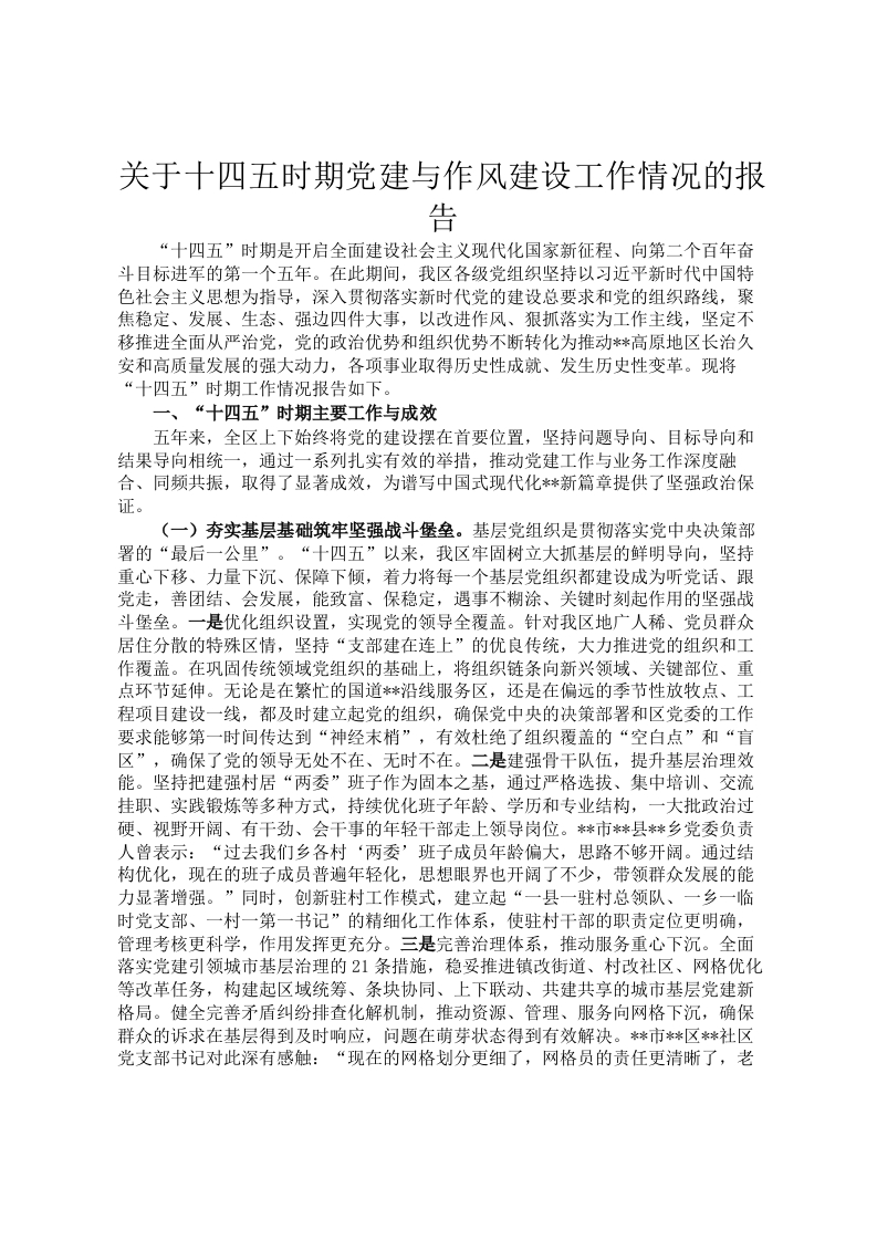 关于十四五时期党建与作风建设工作情况的报告