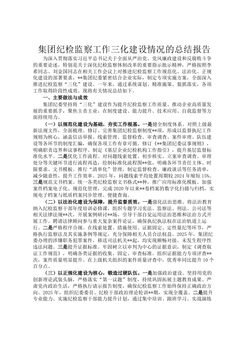 首页讲课讲稿集团纪检监察工作三化建设情况的总结报告