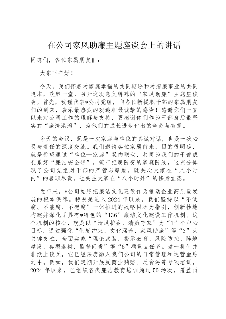 首页学习提升在公司家风助廉主题座谈会上的讲话