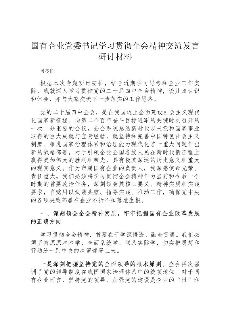 首页写作素材国有企业党委书记学习贯彻***精神交流发言研讨材料