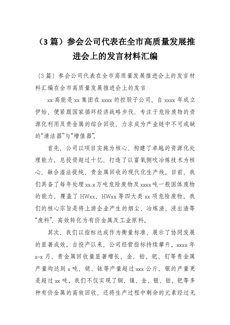 (3篇)参会公司代表在全市高质量发展推进会上的发言材料汇编