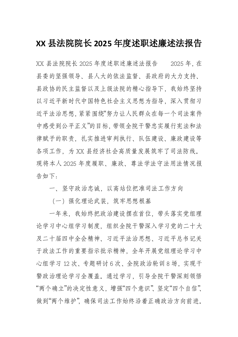 首页讲课讲稿XX县法院院长2025年度述职述廉述法报告
