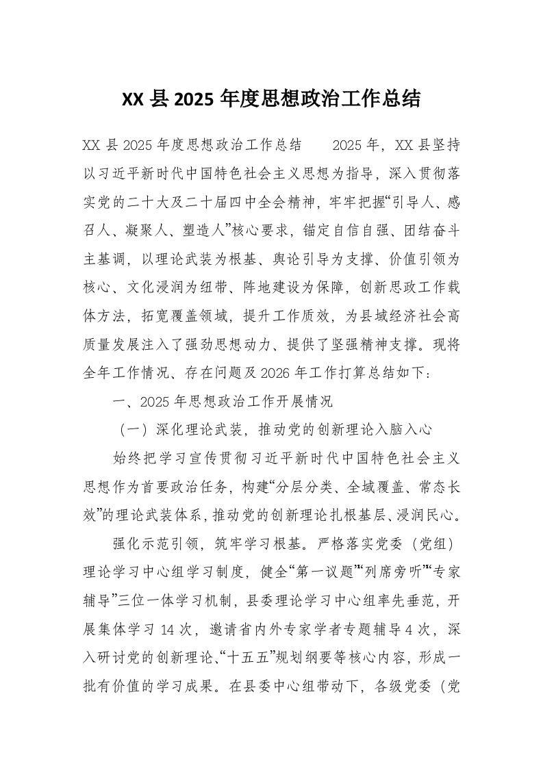 首页讲课讲稿XX县2025年度思想政治工作总结