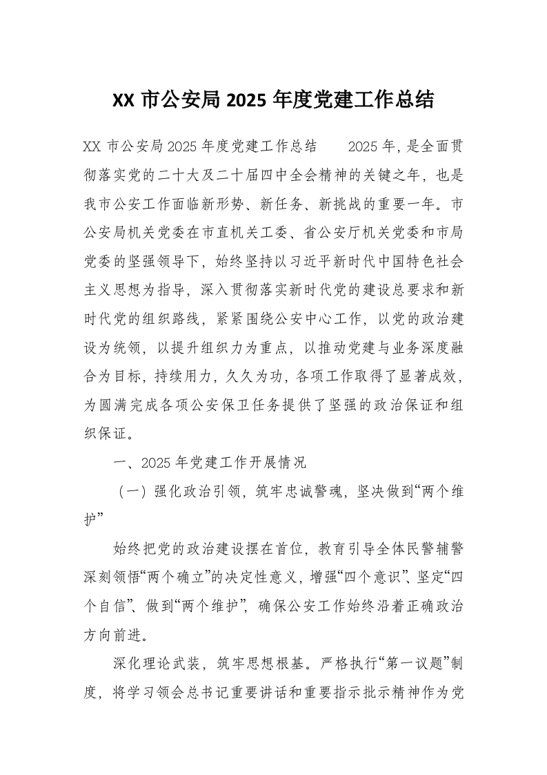 首页讲课讲稿XX市公安局2025年度党建工作总结