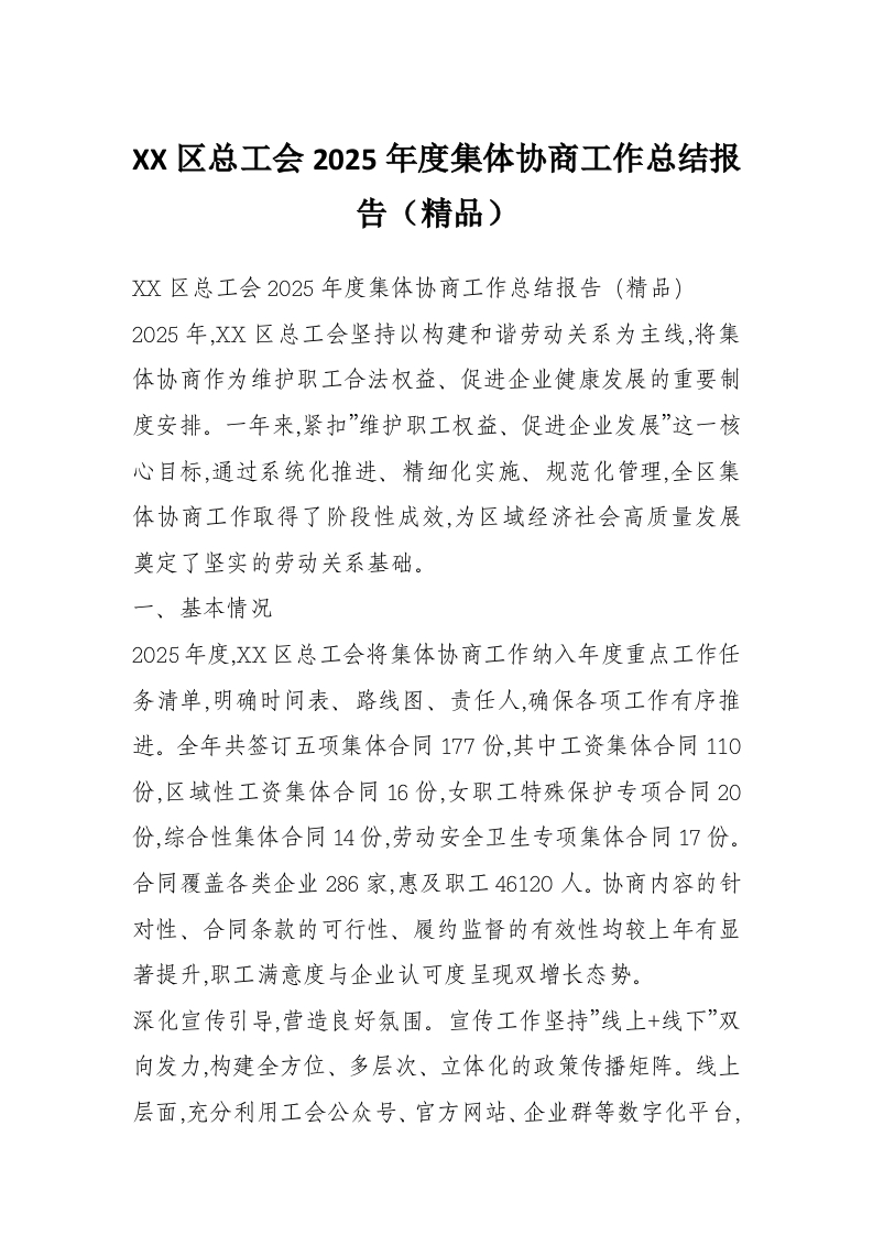 XX区总工会2025年度集体协商工作总结报告(精品)