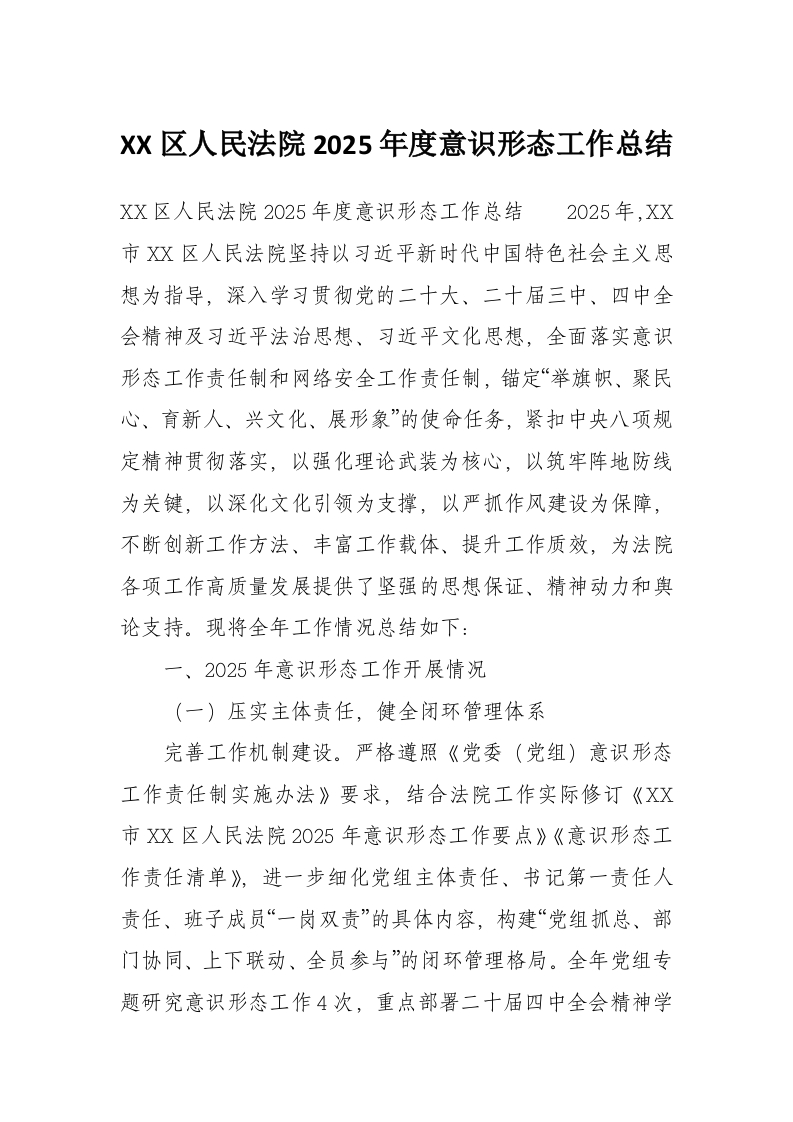 首页讲课讲稿XX区人民法院2025年度意识形态工作总结