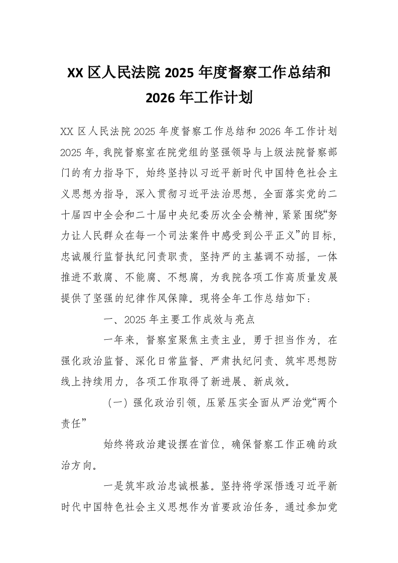 XX区人民法院2025年度督察工作总结和2026年工作计划