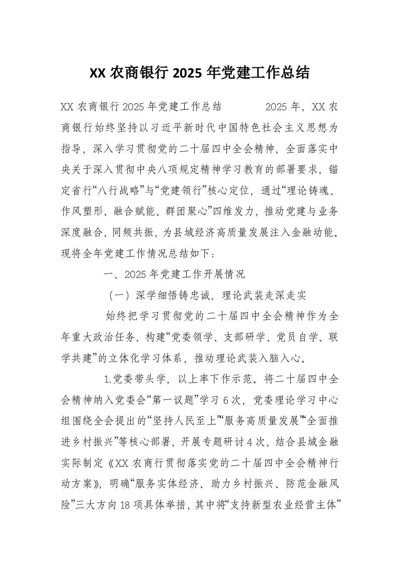 首页讲课讲稿XX农商银行2025年党建工作总结