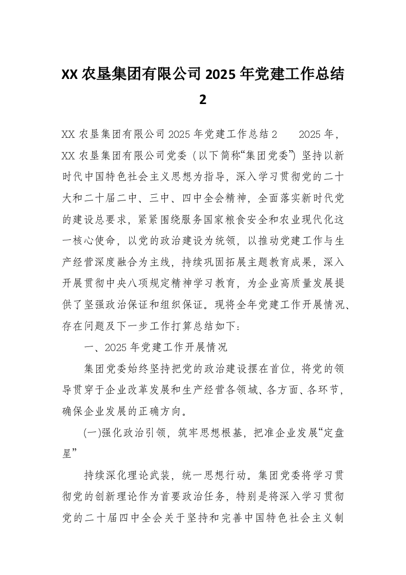 首页讲课讲稿XX农垦集团有限公司2025年党建工作总结2