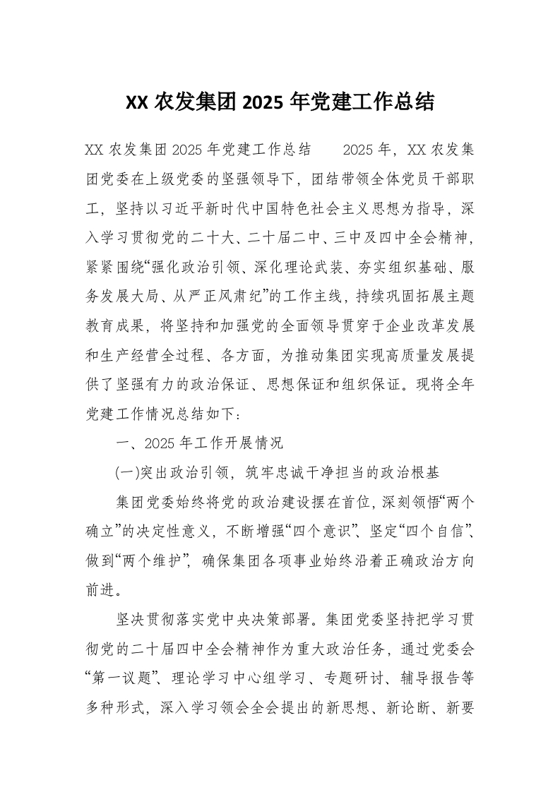 首页讲课讲稿XX农发集团2025年党建工作总结